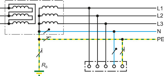 In TN systems, one point is connected directly to earth and the exposed conductive parts of the electrical installation are connected to this point via protective earth conductors.
