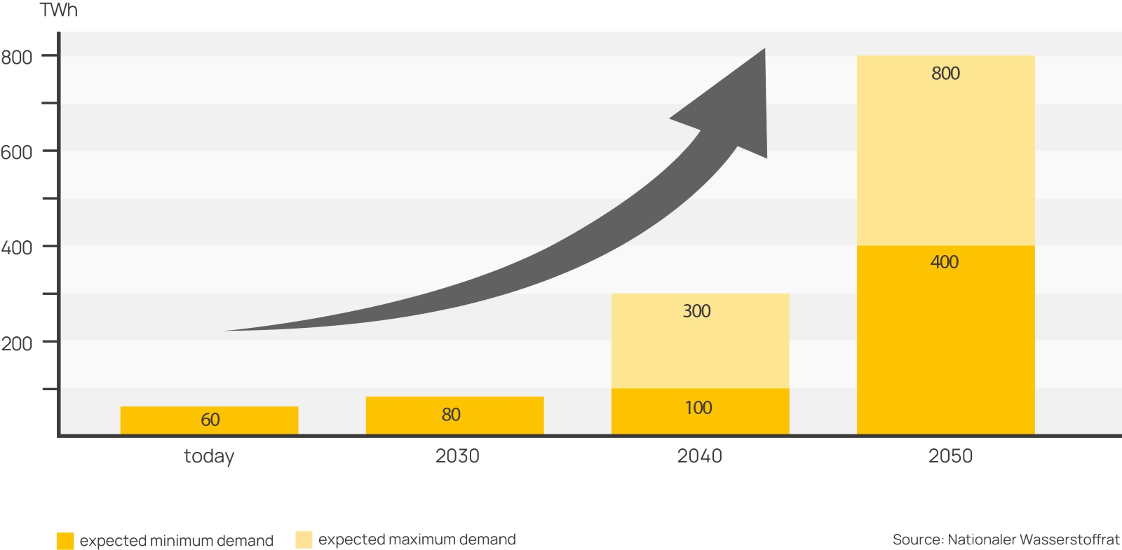 Green hydrogen is needed in particular. Green hydrogen is produced using renewable energies emissions-free and can be converted back into electrical energy just as emission-free.